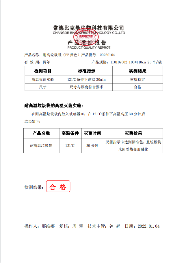 耐高温垃圾袋 黄色 100x110cm (PE复合膜材质) 25个袋 110107002 20220104