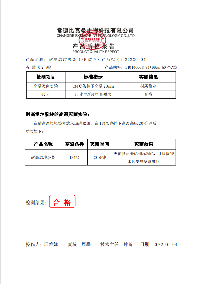 耐高温垃圾袋生 黄色 31x66cm (PP复合膜材质) 50个袋 110106003 20220104
