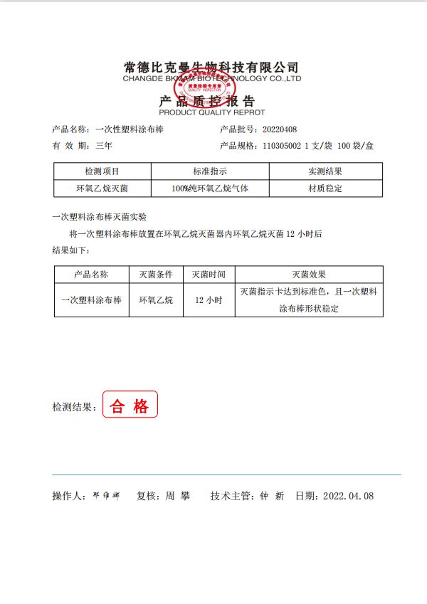 一次性塑料涂布棒 1支袋 100袋盒 110305002 20220408