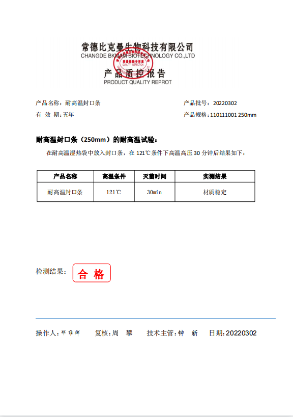 比克曼生物 耐高温封口条250mm 50根包 110111001 20220302