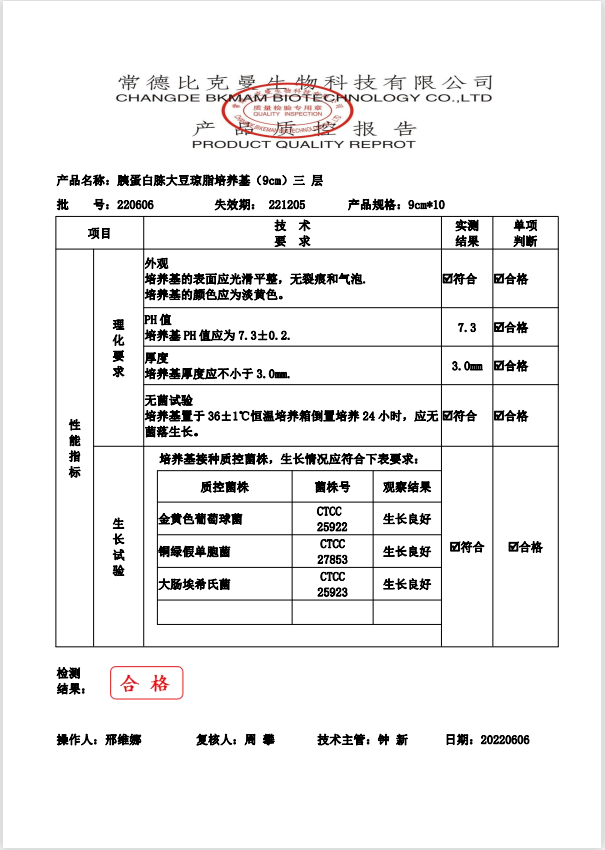 比克曼生物 胰蛋白胨大豆琼脂(三层包装) TSA琼脂平板 9cm 10个袋 110704022 20220606