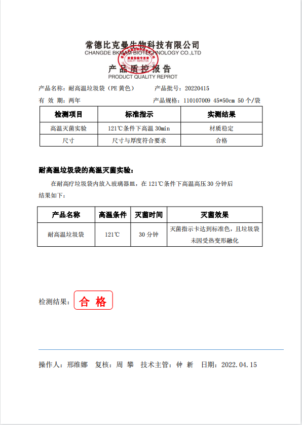 耐高温垃圾袋 黄色 45x50cm (PE复合膜材质) 50个袋 110107009 20220415