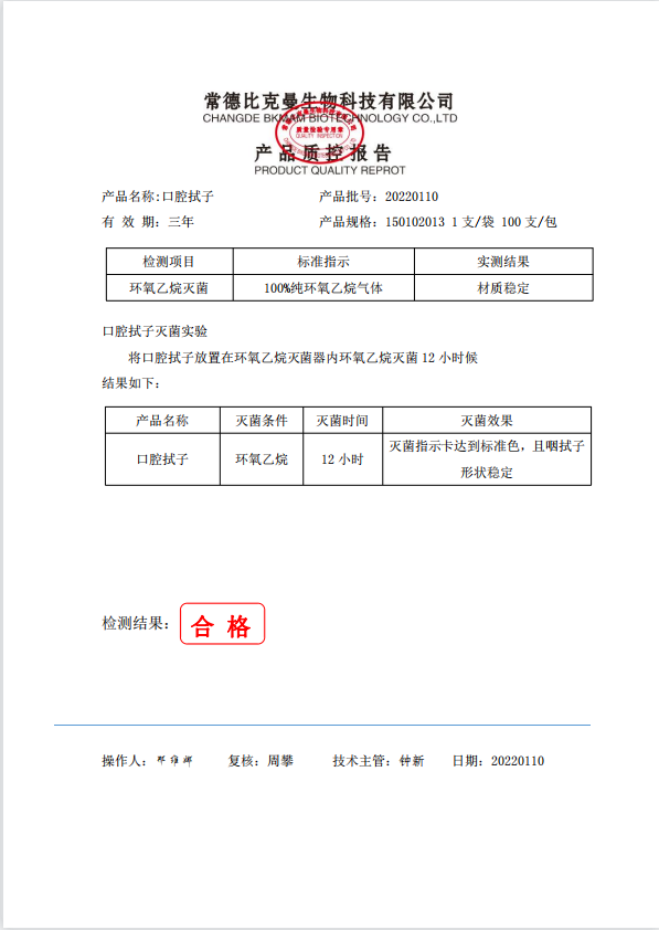 比克曼生物 口腔拭子(独立装) 1支袋 100支包 150102013 20220110