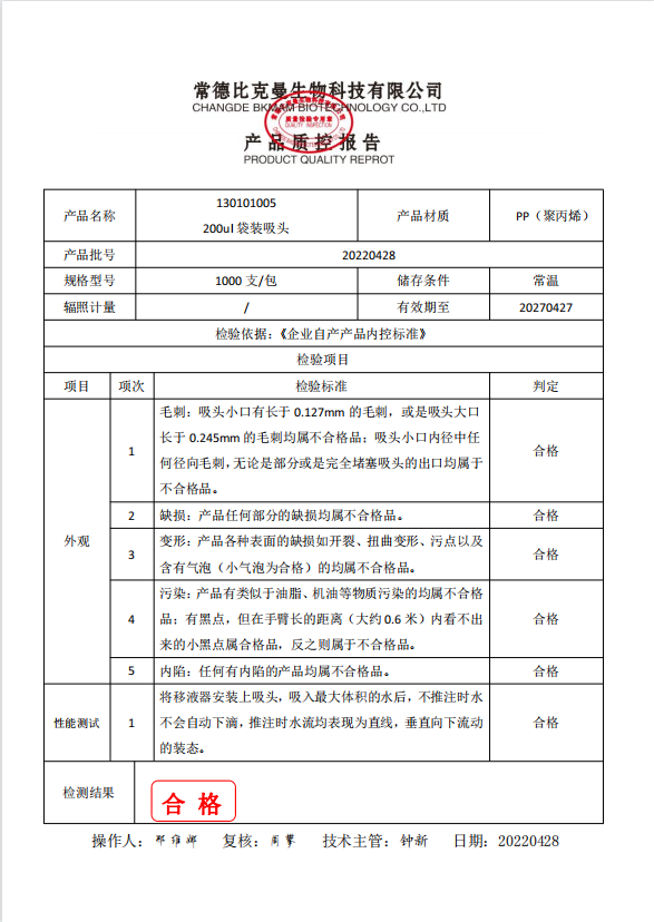 BKMAM 袋装吸头200ul 1000支 包 黄色 130101005 20220428