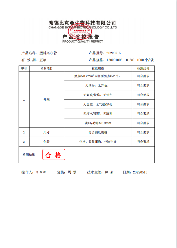 BKMAM 离心管 0.5ml 1000个袋 130201003 20220515