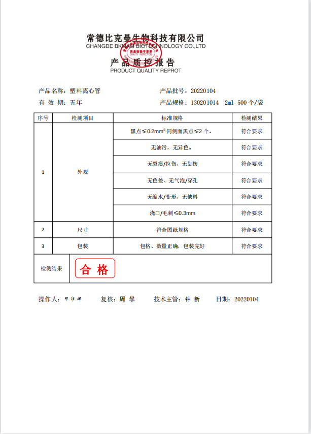 BKMAM 离心管 2ml 500个袋 130201014 20220104