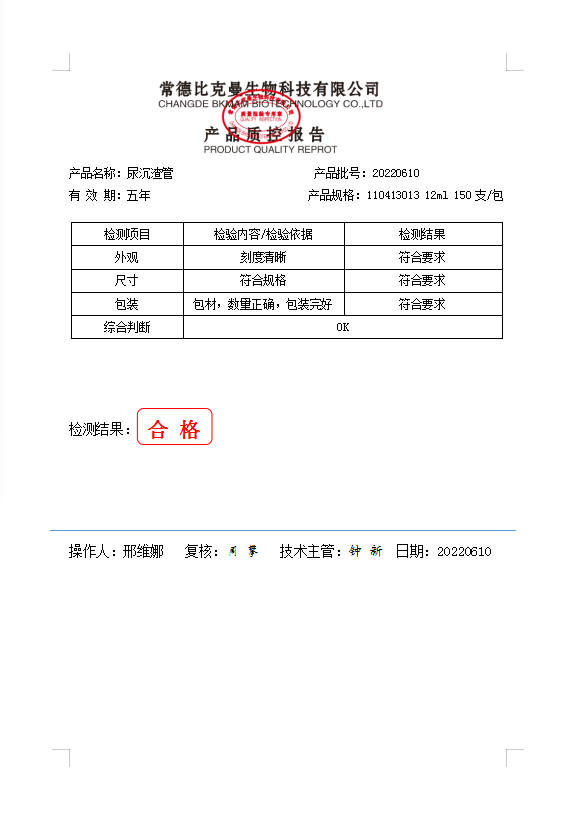 比克曼生物 尿沉渣管 12mL 150支袋 110413013 20220610