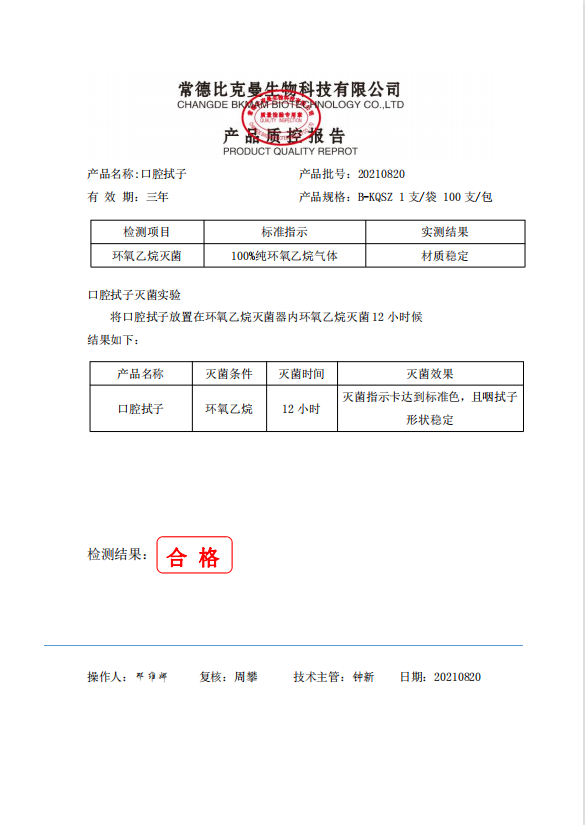 比克曼生物 口腔拭子(独立装) 1支袋 100支包 B-KQSZ 20210820