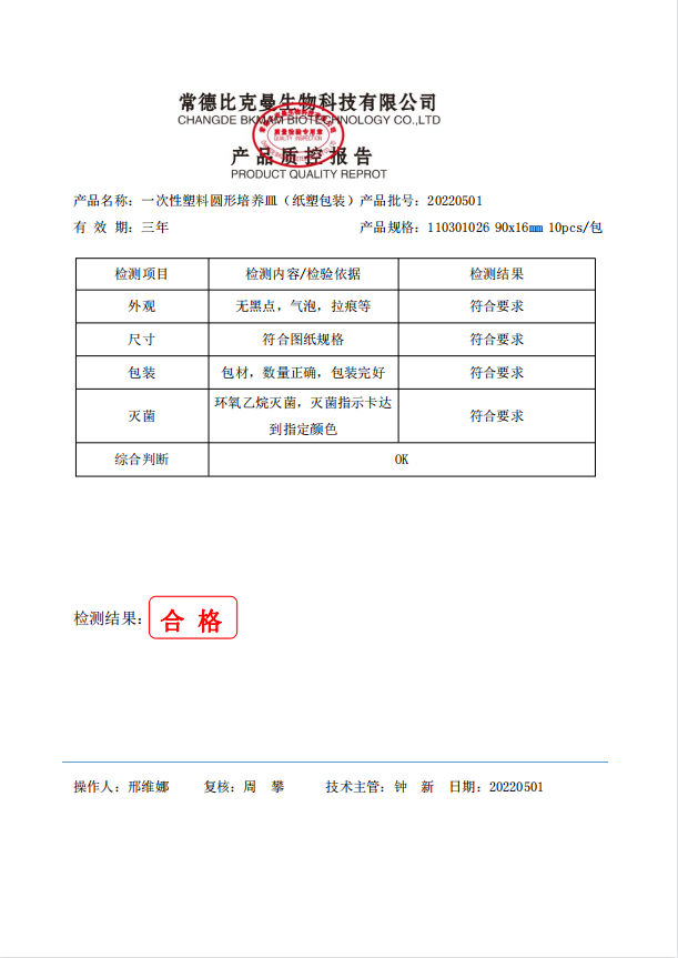 一次性塑料圆形培养皿 (纸塑包装) 90x16mm 10个袋 110301026 20220501