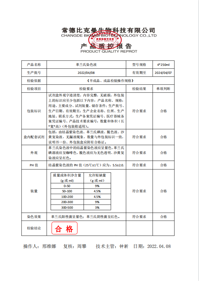 比克曼生物 革兰氏染色液 250ml4支装 110703004 20220408