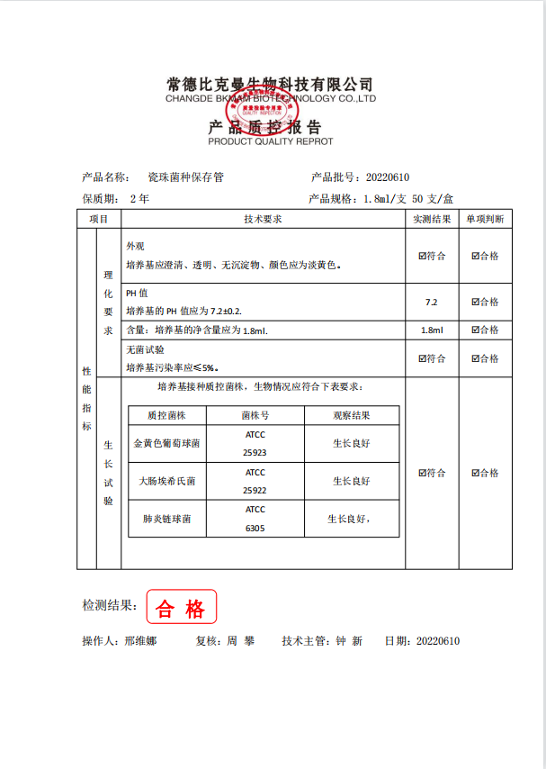 比克曼生物 瓷珠菌种保存管 50支盒 110401033 20220610