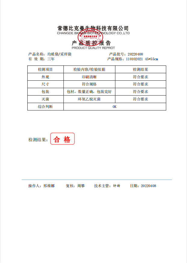 无菌采样袋 45x55 (带压条) 50个装 110102021 20220408