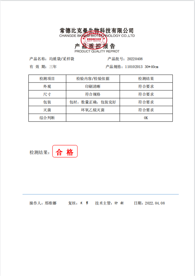 立式无菌采样袋 30x40 (带压条) 50个装 110102013 20220408