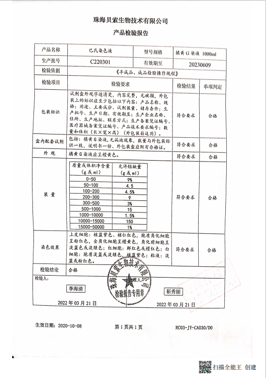 贝索 巴氏染色液 橘黄G 1000ml BA4035 C220301