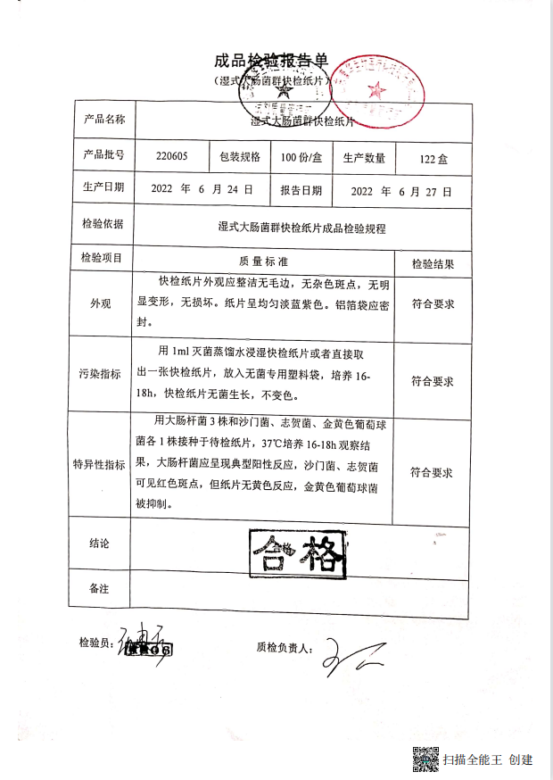 康华 湿式大肠菌群快检纸片 100份盒 160711012 220605