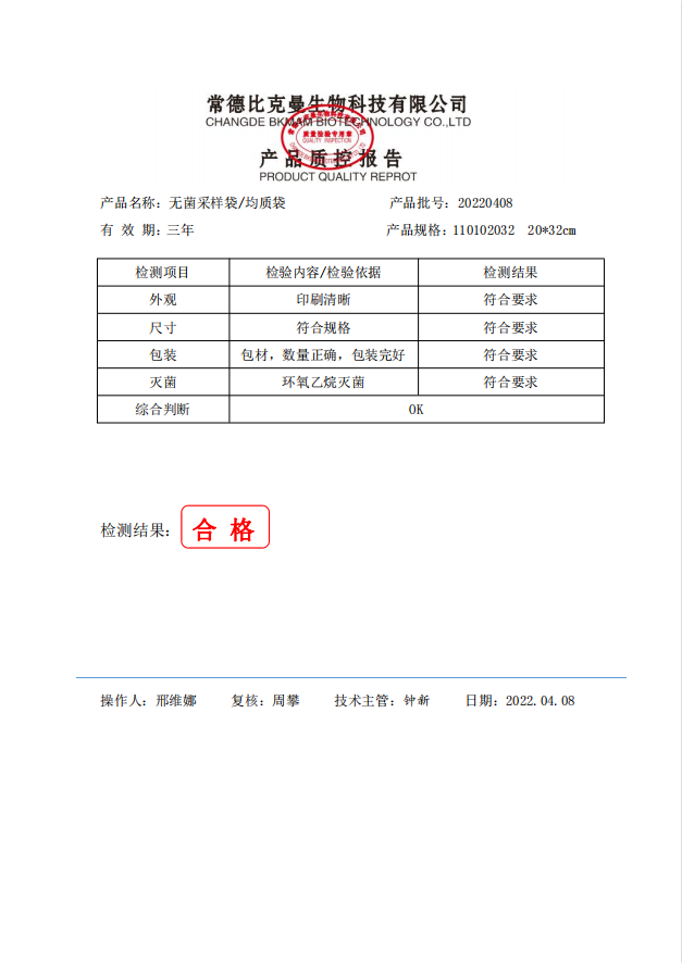 无菌均质袋(不可立带压条)20x32cm 100个装 110102032 20220408