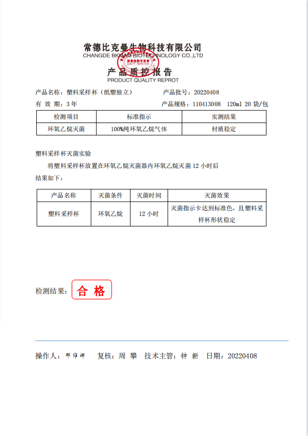 采样杯 (纸塑独立) 120ml 1个袋 20袋包 110413008 20220408