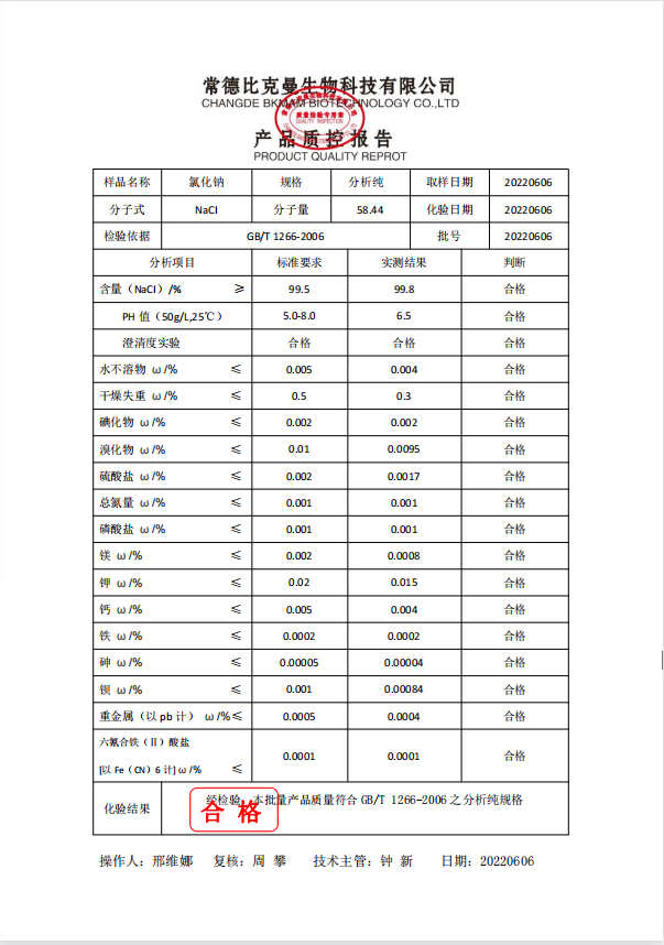 比克曼生物 氯化钠 AR 分析纯 500g瓶 110702034 20220606