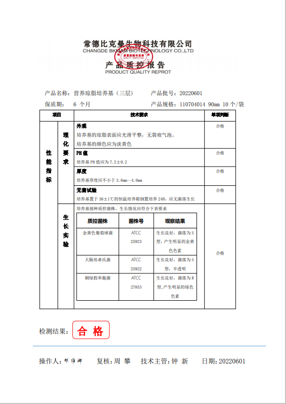 比克曼生物 营养琼脂平板 (三层包装) 9cm 10个袋 110704014 20220601