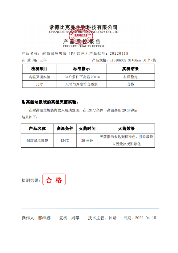 耐高温垃圾袋生 红色 31x66cm (PP复合膜材质) 50个袋 110106002 20220415