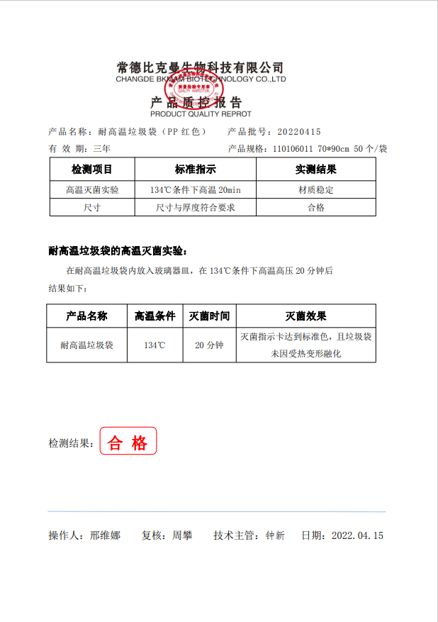 耐高温垃圾袋生 红色带变色指示标 70x90cm (PP复合膜材质) 50个袋 110106011 20220415