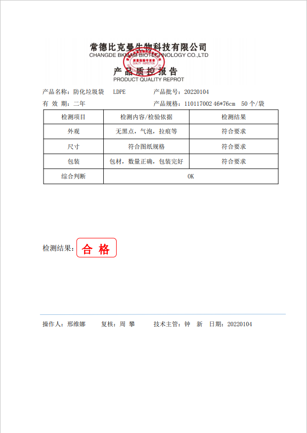比克曼生物 防化垃圾袋 LDPE 黄色 46x76cm 50个袋 110117002 20220104