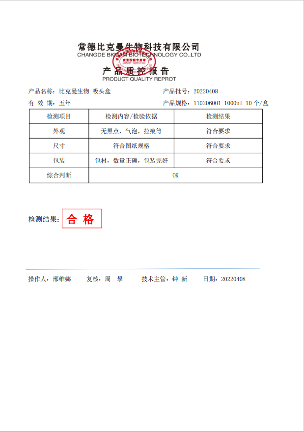 比克曼生物 吸头盒 1000ul 10个盒 110206001 20220408