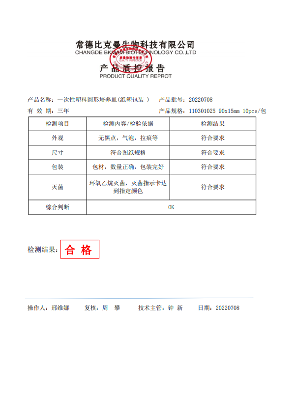 一次性圆形塑料培养皿 (纸塑包装) 90x15mm 10个袋 110301025 20220708