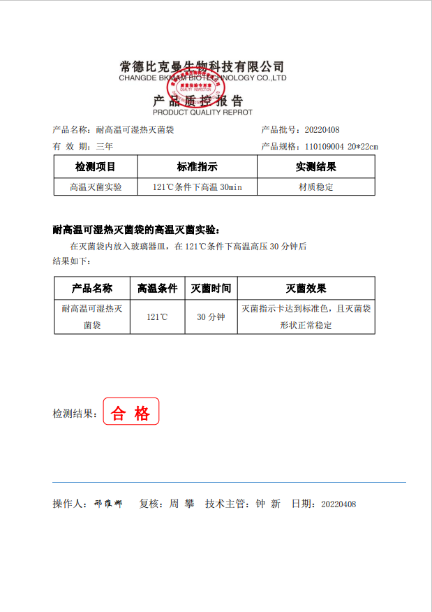 可湿热灭菌高温袋 20x22cm 100个袋 110109004 20220408
