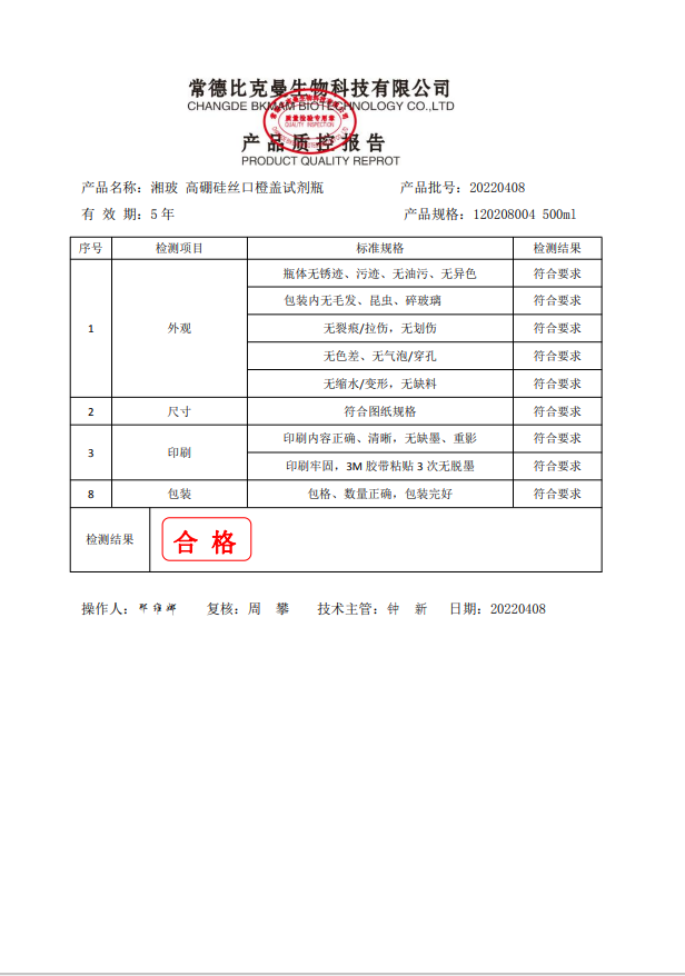 湘玻 高硼硅丝口橙盖试剂瓶 500ml 120208004 20220408