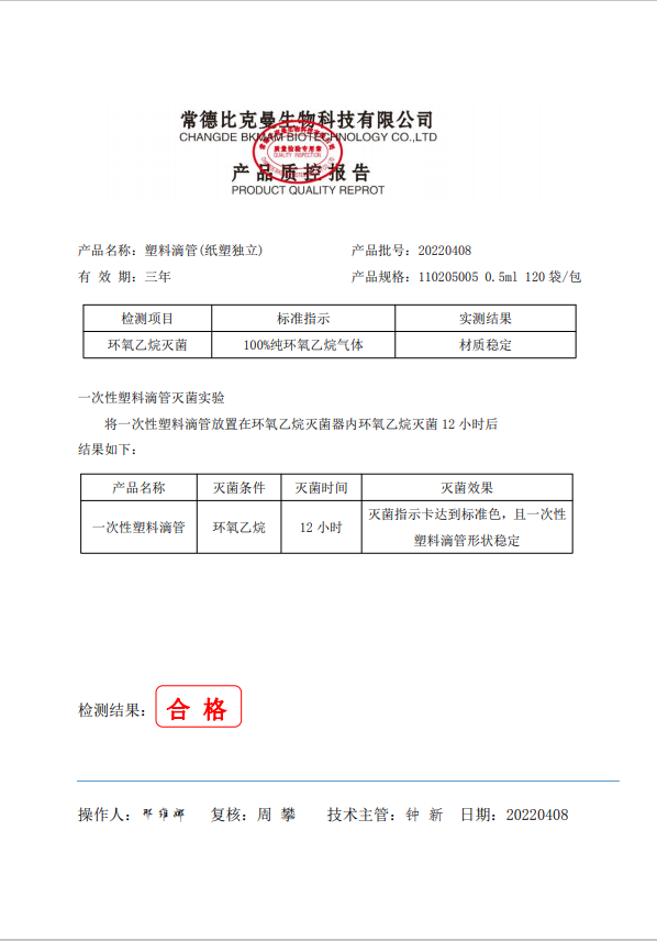 塑料滴管(纸塑独立) 0.5ml 1支袋 120袋包 110205005 20220408