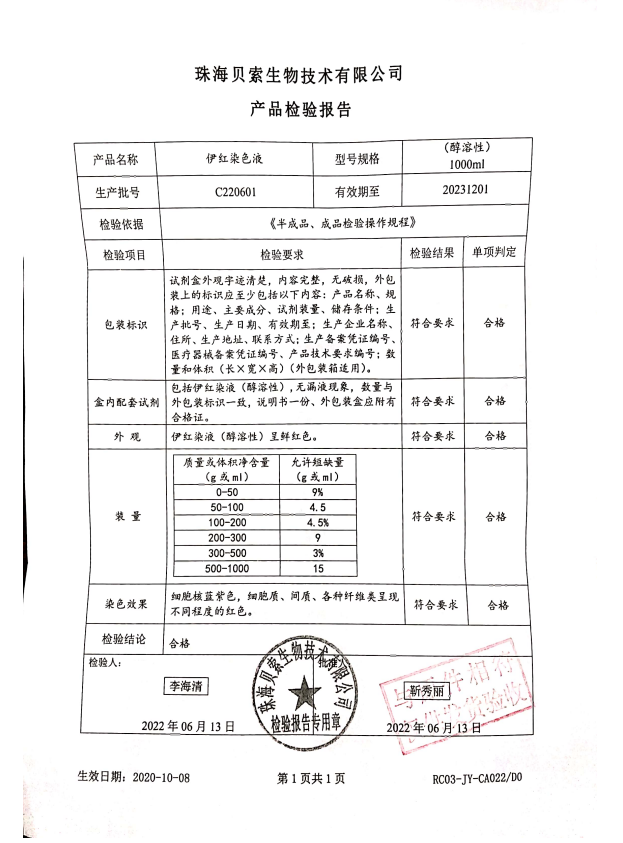 贝索 伊红染液(醇溶性) 1000ml BA4022 C220601