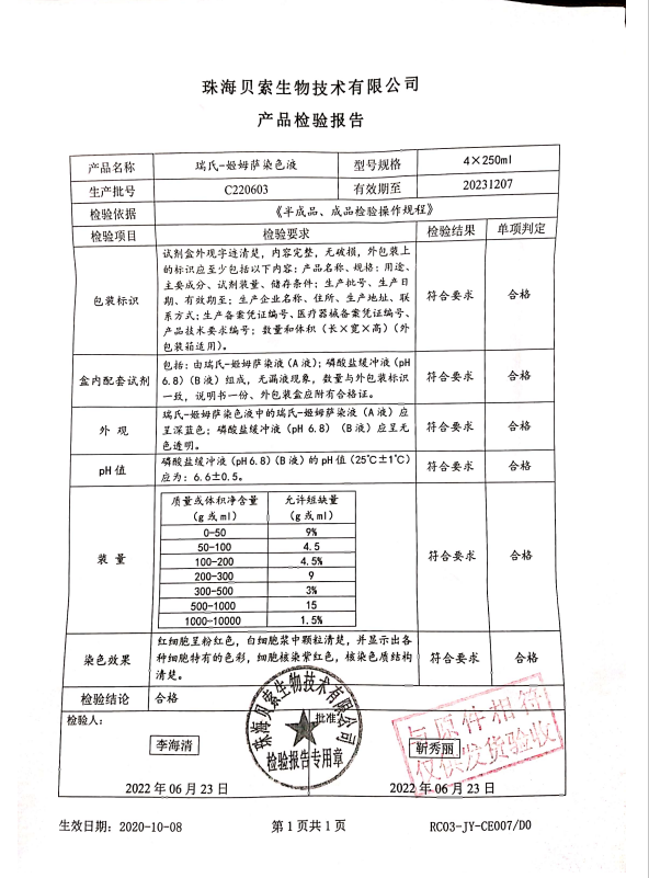 贝索 瑞氏-姬姆萨染色液 250mlx4 C220603