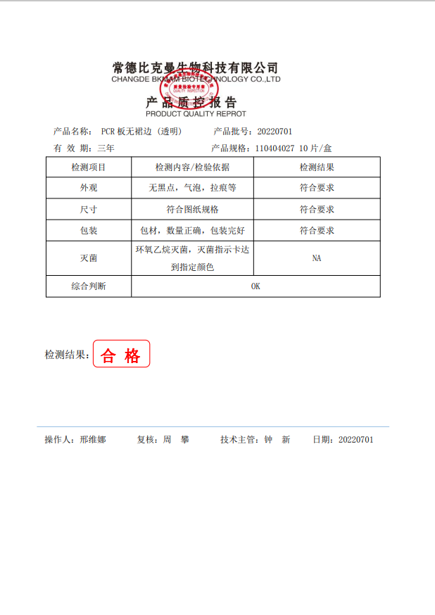 比克曼生物 PCR板无裙边 (透明) 0.2ml 10片盒 110404027 20220701