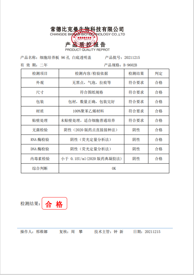 比克曼生物 细胞培养板 96孔(白底透明盖) B-9602B 20211215