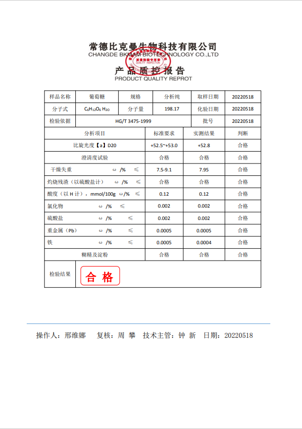 比克曼生物 葡萄糖 AR分析纯 250g瓶 110702040 20220518