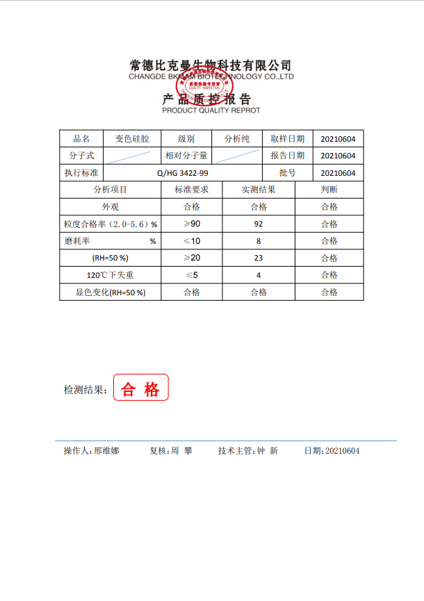 比克曼生物 变色硅胶 AR分析纯 500g瓶 110702005 20210604
