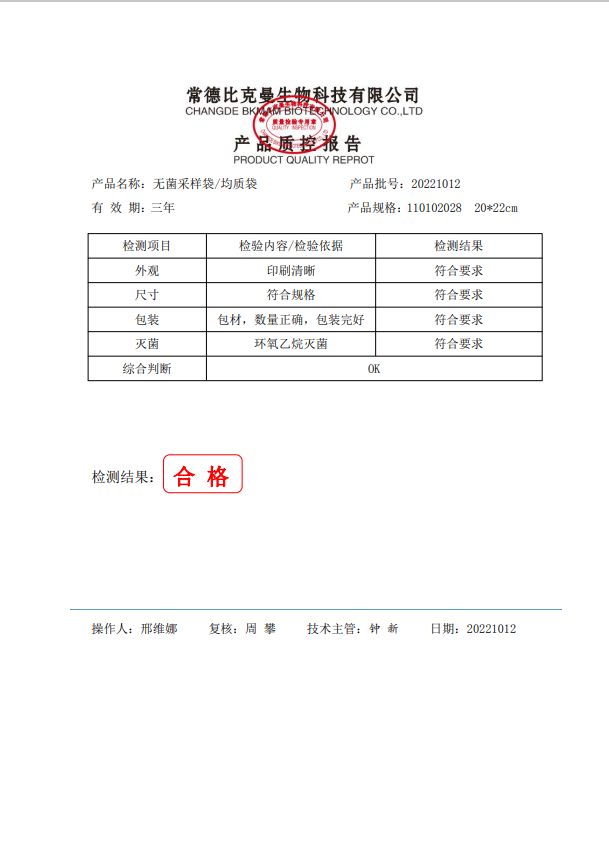 立式无菌采样袋 20x22(带压条) 100个装 110102028 20221012