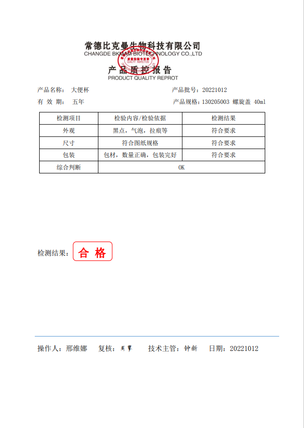 BKMAM 大便杯 螺旋盖 40ml 130205003 20221012