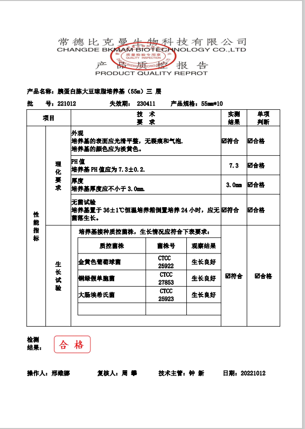比克曼生物 胰蛋白胨大豆琼脂(三层包装) TSA琼脂平板 55mm 10个袋 110704013 221012