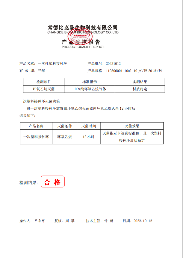 110306001 一次性塑料接种环 10ul (10支装) 10支袋20袋包 20221012