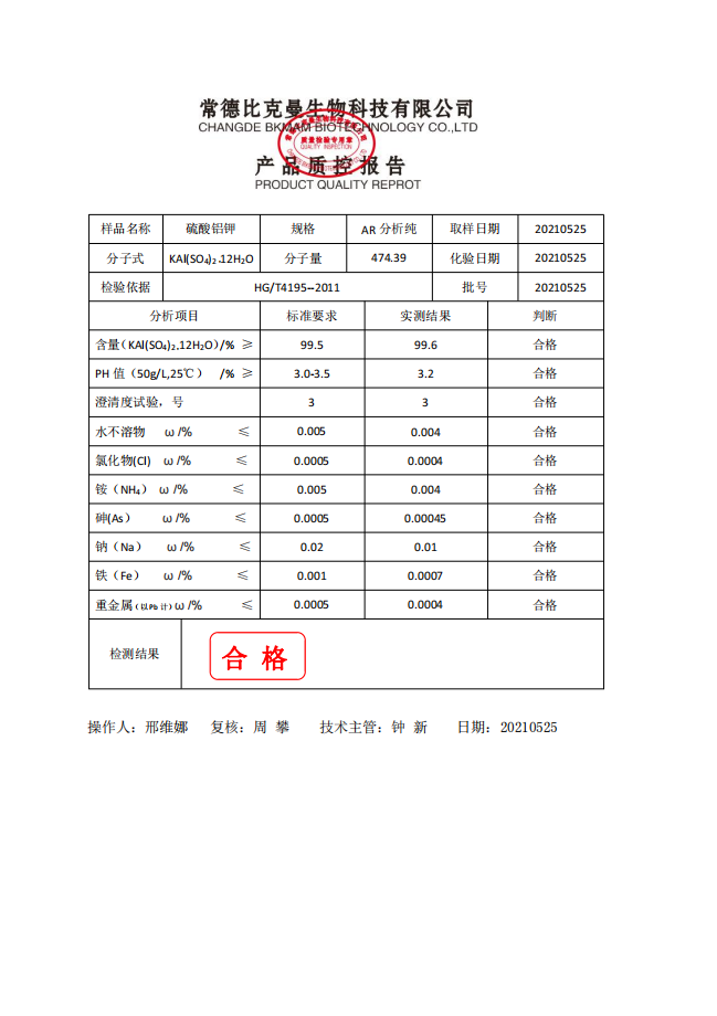 比克曼生物 硫酸铝钾 AR 分析纯 500g 110702026 20210525