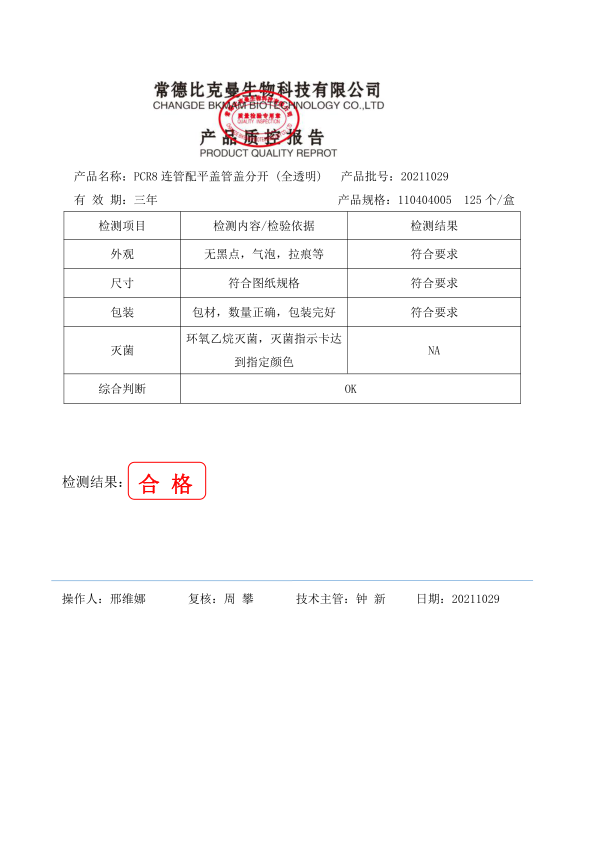 PCR八连排管 0.2ml PCR8连管配平盖管盖分开 (全透明) 125个盒 110404005 20211029