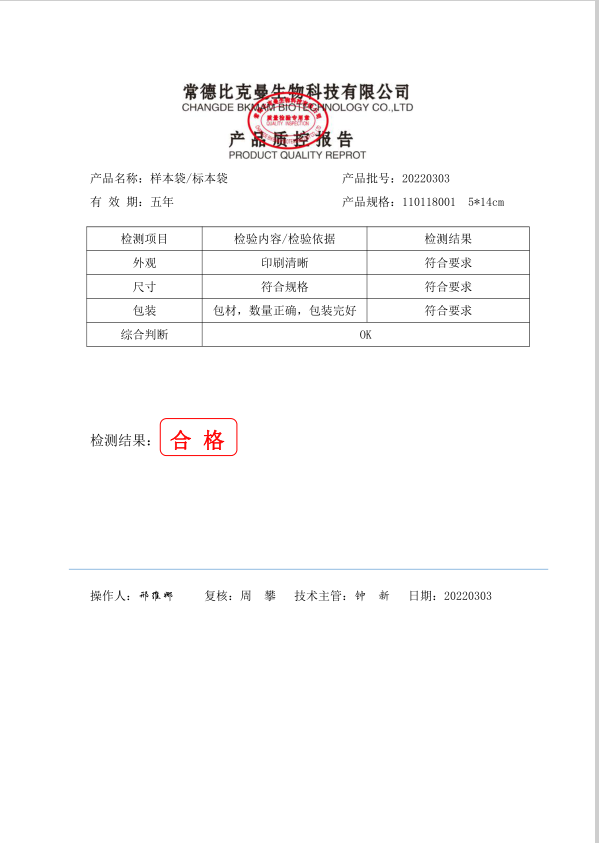 比克曼生物 样本袋 5x14cm 100个 袋 110118001 20220303