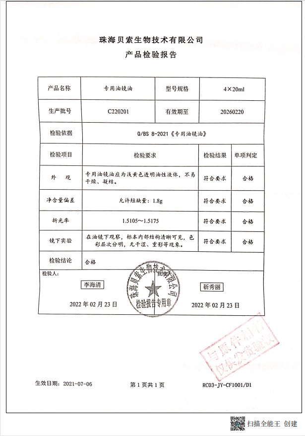贝索 专用油镜油 4x20ml BA-7003A C220201