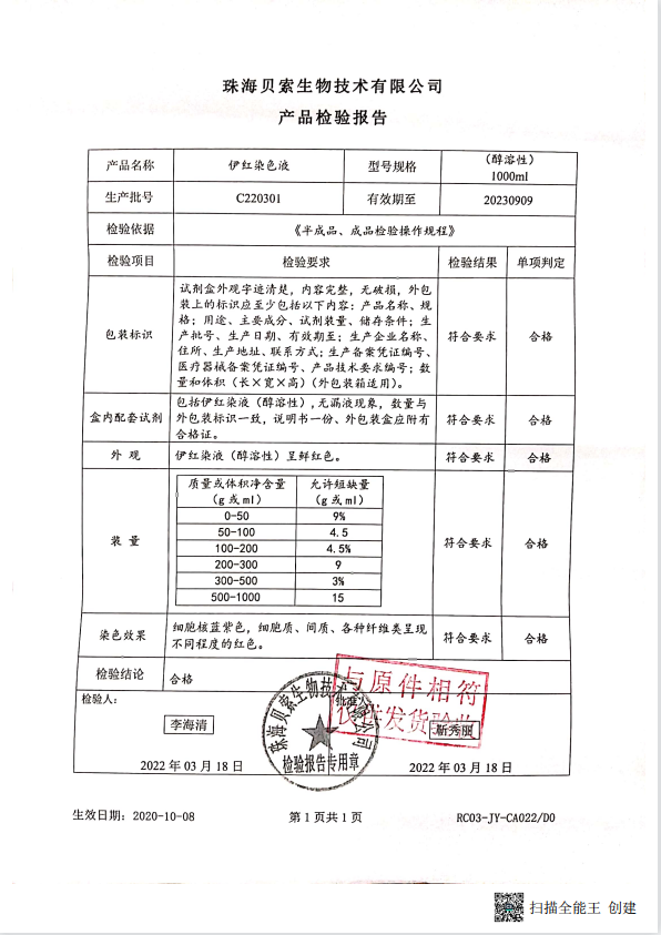 贝索 伊红染液(醇溶性) 1000ml BA4022 C220301