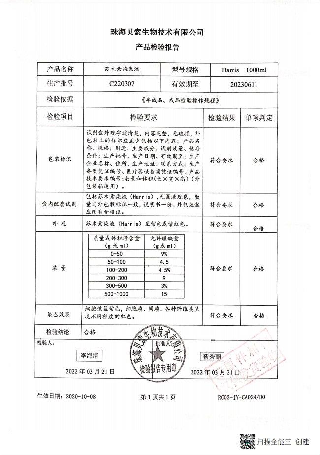 贝索 苏木素染色液 Harris 1000ml BA4041 C220307
