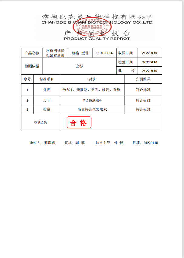 比克曼生物 水份测试仪铝箔称量盘 50个盒 110406016 20220110