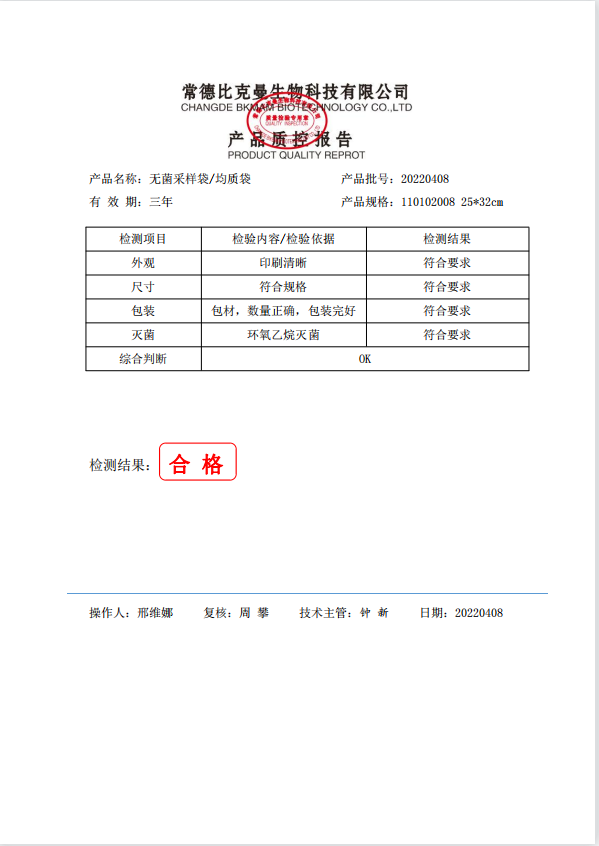 立式无菌采样袋 25x32 (带压条) 50个装 110102008 20220408
