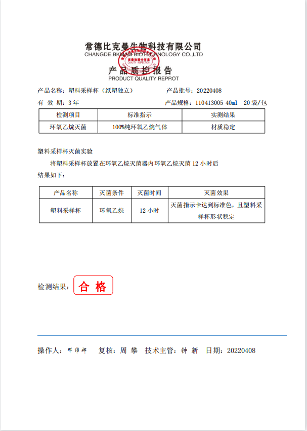 采样杯 (纸塑独立) 40ml 1个袋 20袋包 110413005 20220408